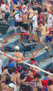 Durante la escena de terror que se vivió en medio de los disturbios que terminaron suspendiendo el superclásico entre Club Olimpia y Cerro Porteño. Uno de los policías que llevó la peor parte, el oficial Luis Martínez (22). Quien recibió una feroz golpiza en la zona de graderías el momento fue captado por los mirones y cuyo video está corriendo en redes como pan caliente.